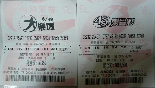 下面是我這次買的號碼中了15號跟38號二個號碼,總共花了1550元買了樂透!