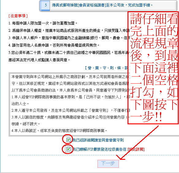 二、看完流程規則後到畫面最下面打勾看過並按下一步