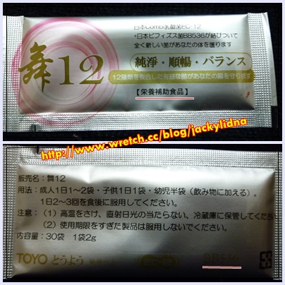 配溫開水食用,服務人員也有說明,『日本舞12終究版』的成分比一般的益生菌比較不同,