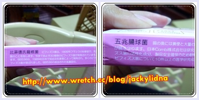 盒子兩邊的側面,有特別介紹比菲德氏龍根菌跟五兆腸球菌的介紹