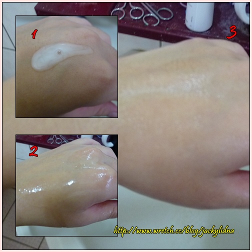 圖2、加一點水把浴潔露洗開,完全沒有泡泡喔,而且直地真的很柔和